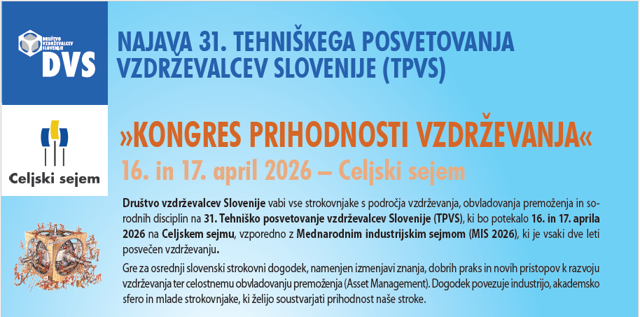 Društvo vzdrževalcev Slovenije vabi vse strokovnjake s področja vzdrževanja, obvladovanja premoženja in sorodnih