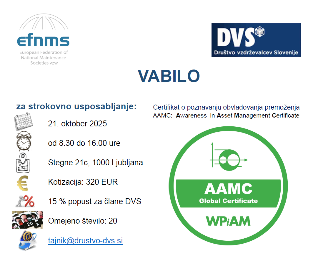 po GFMAM« ter na družini standardov SIST ISO 5500XX in evropskih standardih s področja vzdrževanja, ki se